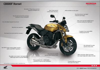 more “Dynamic Performance,” the new 2007 CB600F Hornet has been forged,